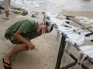 Idham cornered a few students for the interview and video taping segment. Idham is passionate abut filming and video taking. He even had been attending lessons on film making and upgrading himself with some video programming software from the internet. After that task, all of us trooped to the beach to take some shots at the beach while balancing ourselves on the moss-covered rocks.